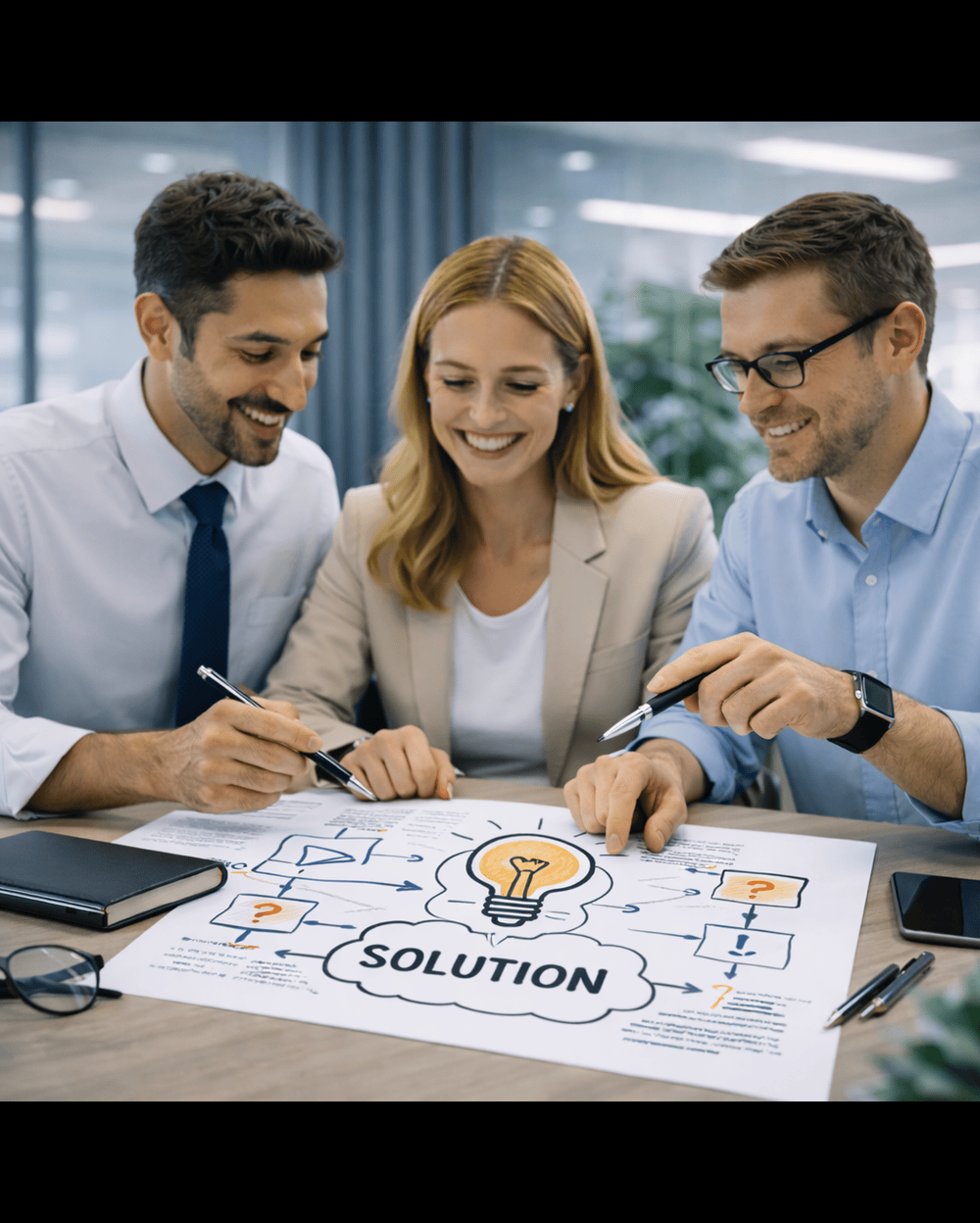 Wir entwickeln Lösungen gemeinsam mit Ihrem Team und begleiten deren Umsetzung. Unser Anspruch sind wirksame, realistische Lösungen, die im Alltag funktionieren.